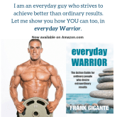 Frank Gigante is in every way an Every Day Warrior. His never-say-quit attitude has served him well as a Rochester City School teacher, a world class athlete competing in All-Natural Professional Bodybuilding Competitions, a single father to two beautiful daughters, a brand ambassador, magazine columnist and hobby furniture maker and woodworker in his spare time. Whatever goals Frank sets, his voracious appetite to be more than he was the day before drives him to succeed. He shares the lessons he has learned in his book, Everyday Warrior, making it easy to follow his time-tested practices for success.
